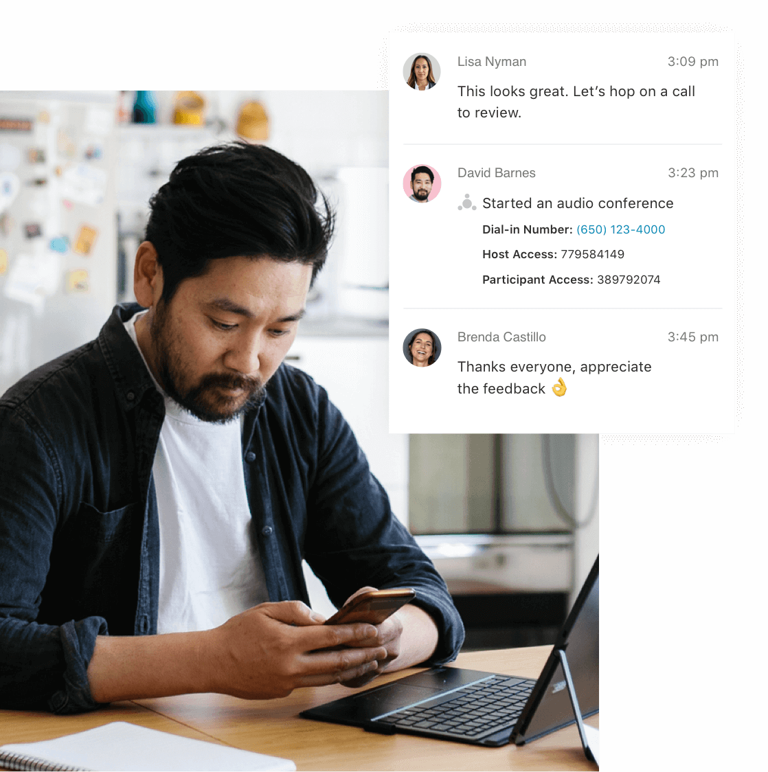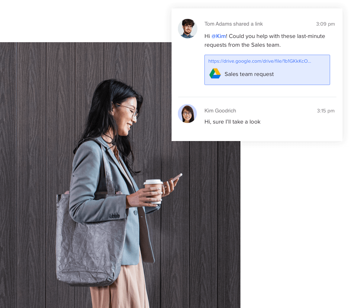 Either on the desktop or mobile app you can send Instant Messages to your coworkers, text messages to customers, and receive faxes from your clients.